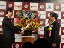 島村会長の式辞、来賓祝辞に続き、創立60周年記念表彰が行われ、福島工組からは山川章前理事長、有賀善吉前副理事長が全印工連会長特別賞を受賞しました。